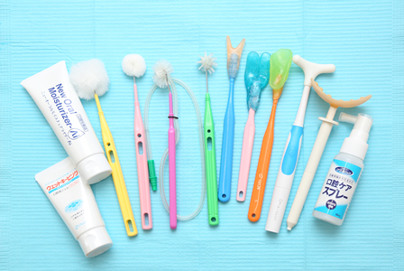 当院では、歯ブラシや歯間ブラシに加え、専用の口腔ケア・リハビリ用の器具も活用し、より効果的なケアを行っています。