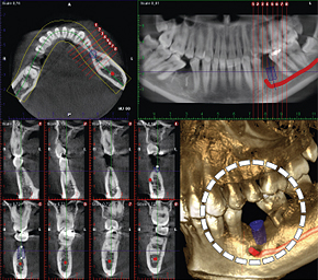 インプラントを埋入する部位の骨の高さや幅、神経との位置関係を立体的に把握することで、より正確かつ安全な治療計画を立てることができます。