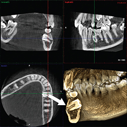 あごの中に埋まっている歯の位置や向きを立体的に診断できます。