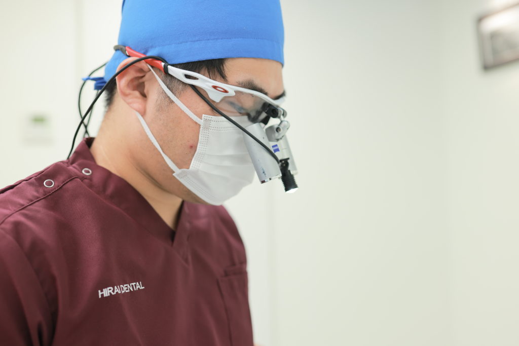 当院では、歯科医師・歯科衛生士ともに2.5〜10倍に拡大できる拡大鏡を使い、一般診療でもより精密な治療を行っています。