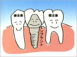 インプラントは、隣の健康な歯を削ることなく、失った歯の部分に直接人工歯根を埋め込み、その上に人工の歯を取り付ける治療法です。
