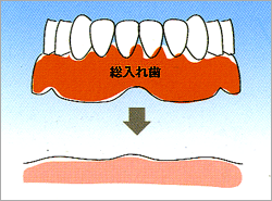 顎全体を覆うタイプの入れ歯(総義歯)を装着します。